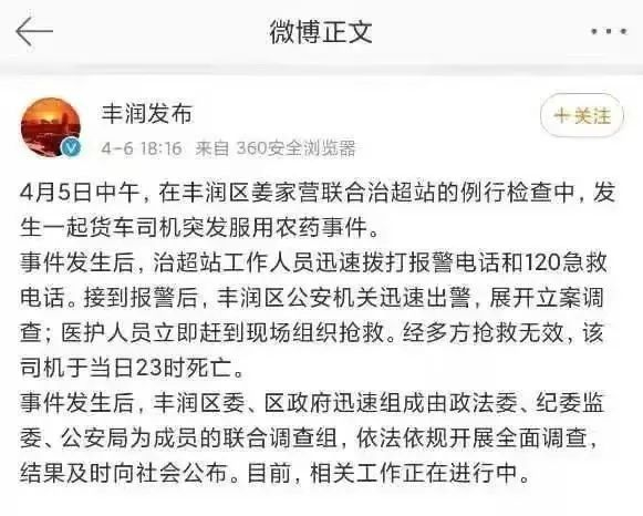 近日,一起“货车司机服用农药自杀事件”引发舆论高度关注。