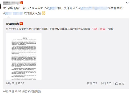 4月9日,中国电视艺术交流协会等发布关于保护影视版权的联合声明。