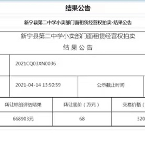 “214 万!”、“214 万 5000!”、“220 万!”、“220 万 5000!”……近日,一段来自拍卖现场的竞拍视频在某短视频网站上热传,标的物则是湖南省邵阳市新宁二中小卖部的租赁权。视频显示,现场竞买情况火热,经竞买人多轮出价后,最终以 320 万的高价成交。因标的物特殊性和拍出的高价,此事引发网民热议。