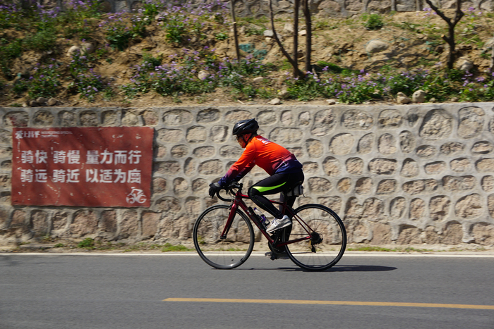 记者注意到,沿着怀长路,安全标语几乎每一两百米就会出现一个,但是速度一个比一个快的骑友,也比比皆是。有村民说,这条路最近几年,经常整修。以往被大卡车压得坑坑洼洼的路面,越来越平整,这大概也是能吸引骑友的原因。