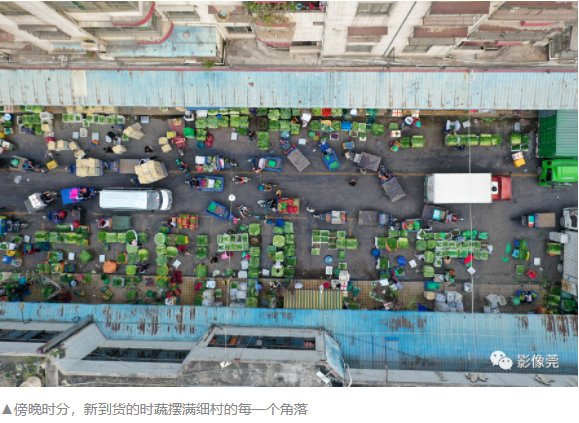▲清晨,一筐筐的新鲜蔬菜运抵细村市场