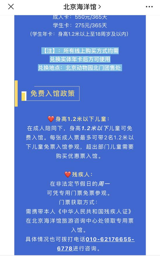 相比之下,北京海洋馆的规定更像是特意为二孩家庭量身打造。按照免费入馆政策,在成人陪同下,身高1.2米以下儿童可免费入馆。每张成人票最多可带2名1.2米以下儿童免票入馆参观,超出部分儿童需要购买优惠票入馆。
