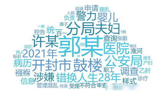 截至4月21日15时,相关新闻报道1037篇,相关客户端文章5040篇,微信文章296篇,微博话题“#警方通报错换人生28年事件#”“#河南大学回应错换人生28年质疑#”等微博话题累计阅读量超2.5亿次。
