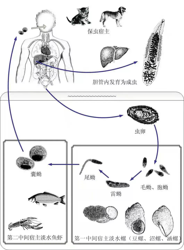据统计,我国肝吸虫流行区平均感染率为2.4%,而广东地区(尤其番禺、顺德等地)由于饮食习惯喜好生鱼片,感染率远远高于平均水平,达16.4%。此外,某些地区在鱼塘上盖厕所,加大了寄生虫进入鱼体内的可能性。