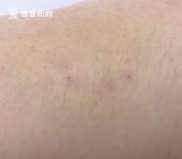 刘先生说:“‘女鬼’有一段进行演绎,在我们身边凑,然后我看到她手里拿着一个真的铁链子在那甩来甩去,砸出声响吓唬我们,我觉得那个好奇,好玩,然后我就动了一下她的铁链,她转过头来就先咬了我的胳膊,就没咬到我的肉,咬到衣服,然后就换了一个方式,就咬到我的胳膊,这已经一周过去了,到现在还有这个牙印。”