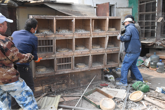 在工作人员不厌其烦上门沟通下,终于征得这户居民的同意,表示将信鸽运走后立即拆除鸽棚。拆除当天,万寿路街道做了细致的拆除方案,对现场工作人员防护以及鸽棚的消毒处理等细节都一一落实到位。拆除现场秩序井然,各环节全部按方案顺利进行。