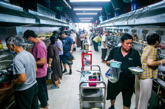 2020年9月1日,河南郑州市,河南省肿瘤医院旁的一家“共享厨房”,每到饭点就会有大批癌症患者的家属来这里做饭。他们大多因为看病家庭负担较重,为了节省花销,也为了病患吃的干净、放心些,便选自己动手做饭。图/IC