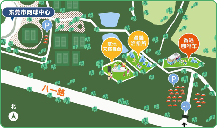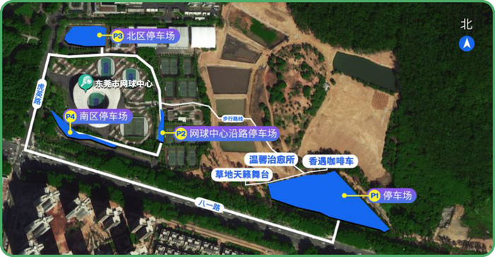 自驾:导航搜索东莞市网球中心,沿八一路可抵达黄旗南公园,为了避免拥挤,可以提前进场。