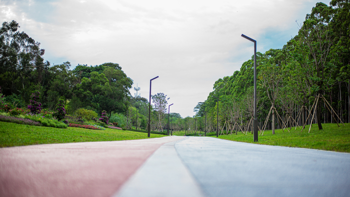 黄旗山南麓文体带绿道及沿线景观提升工程又名“香遇走廊”,主线约2.8km,整体分为四段,按照两期开展建设。其中一期工程包含三段、四段,西起虎英路,东连中央绿轴北端,总投资约4850万元,建设内容主要包括6米宽绿道(2.5米步行道+3.5米自行车道)以及两侧景观带。项目由市中心城区建设现场指挥部及东城街道统筹建设,于2020年3月敲定选线方案,6月确定建设模式,9月代建单位正式进场施工,绿道一期工程将于2021年4月30日完成,5月1日对外试运营开放。