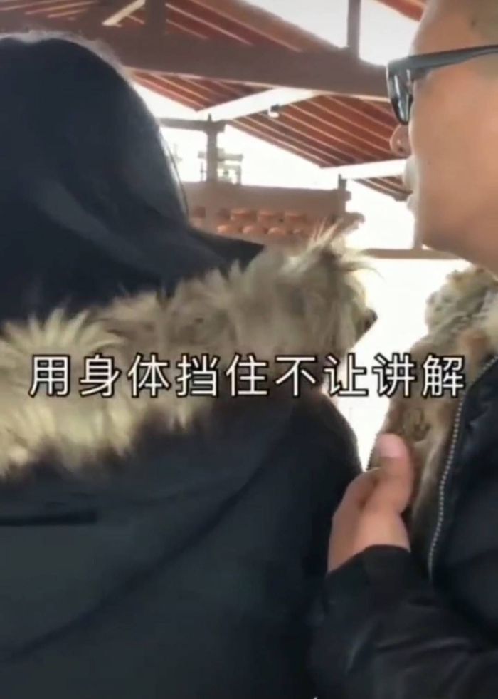 “姜昆老师的助理直接站在了我和我的游客中间,让我暂停为我的游客讲解,因为我的行为会影响到姜昆老师参观。”该导游在视频中称,他一直等到姜昆等人离开才恢复工作,同时,他还展示出了事发时的一段视频。从该视频中,确实可以看到该导游的工作受到了一名女性工作人员的影响,但封面新闻(thecover.cn)记者并未能听清该工作人员的声音,同时也无法确认该工作人员的身份。