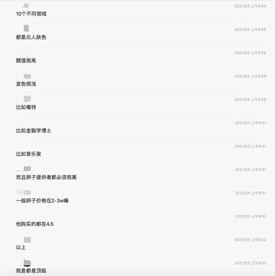 5月6日,一则群聊的聊天记录在网络流传。聊天记录显示,希望教育集团总裁、电脑培训机构“五月花”创始人汪某武在美国买了20个顶级卵子,用自己的精子配对了20个女宝宝。据爆料人透露,汪某武选择了20个来自“不同领域、白人肤色、颜值高、发色浅的模特或者金融学博士”的高级卵子。