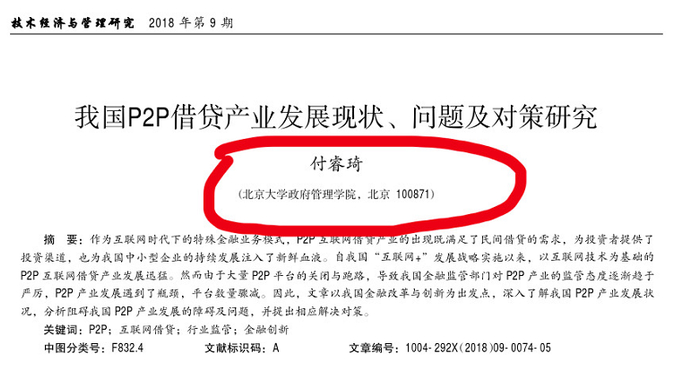 合同书中所涉论文的作者简介也提到,付睿琦是博士,研究方向为公共经济学和公共管理学,而2018年6月发表的论文则显示,付睿琦的身份是博士后、讲师。
