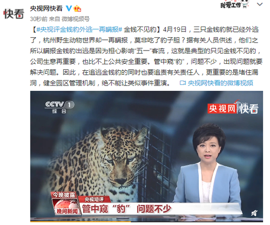 原标题:央视评金钱豹外逃一再瞒报 金钱不见豹