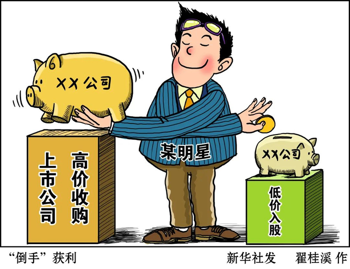 以高位减持为例。上市公告显示,一些知名影视公司在历经参股、收购、投资等一系列“神操作”后,其股价一路飙升,发行后市盈率很高,“明星股东”纷纷减持套现。比如,范冰冰“阴阳合同”事件后,某知名上市影视公司暴跌数十亿元,很多接盘的“韭菜”散户当了炮灰,亏得血本无归,让人不寒而栗。