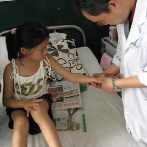 2008年,汶川地震后,成都中医药大学附属医院的志愿者记录医生为被救女孩治疗。受访者供图