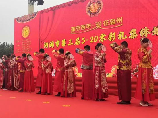河北沧州河间举办第三届520零彩礼集体婚礼