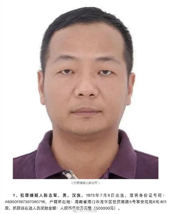 三亚市公安局近日发布悬赏通告,陈志军、陈学军因涉嫌黑恶犯罪在逃,警方悬赏人民币一百万元,抓获一名即奖五十万。发现在逃人员请及时联系经办警官(尹警官13637675198、魏警官18189889712)或拨打110报警。同时,公安机关承诺严格保密举报人个人信息,并按有关规定采取相应的保护措施。(人民网海南频道)