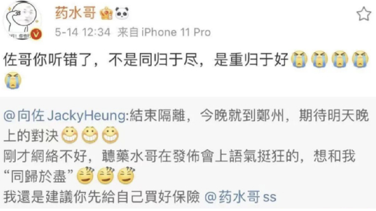 原本以为这不过是又一个“药水式玩笑”,结果没想到,5月11日晚,向佐主动转发药水哥推文,反问:“听说你能一拳把我干碎?”