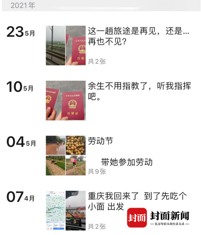经过与小吴的微信交流,封面新闻简单梳理出文境和小吴相爱相守的时间线: