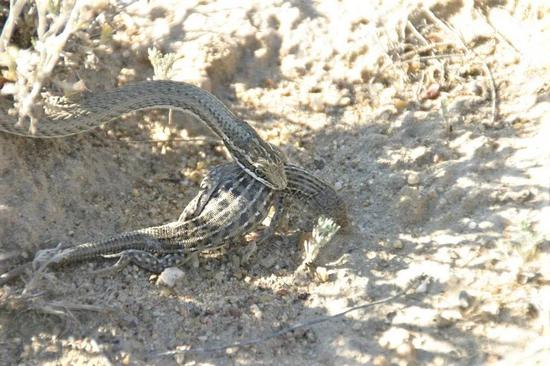 一说起蛇,大家最想知道的还是它们有没有毒。“吐鲁番花条蛇为毒蛇,但其毒牙为后沟牙,即它们的毒牙生长在上颌后方,并且毒性微弱,对人类和牲畜不会造成威胁,主要是对冷血动物起作用,比如说它咬了蜥蜴,对蜥蜴就有麻醉作用。”他说。