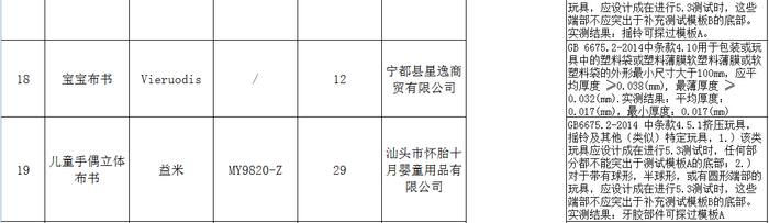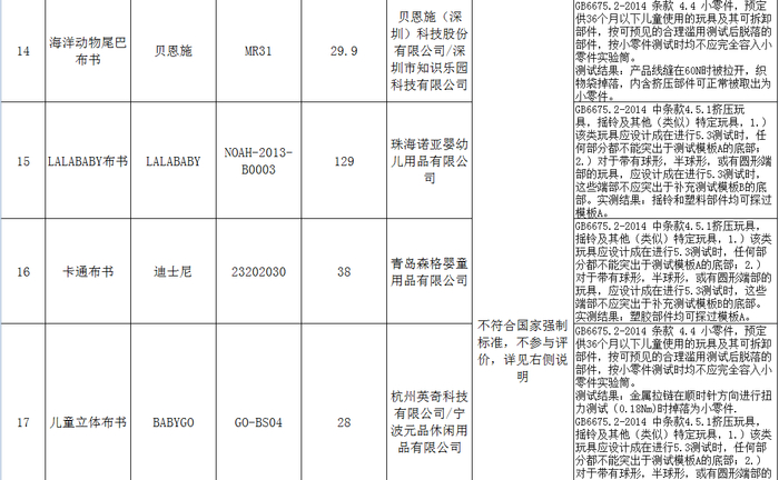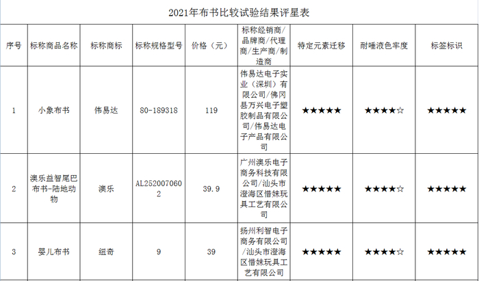 测试结果显示,超三成样品存在产品标识标注缺陷;样品中有四分之一布书产品的形状、尺寸及强度测试未通过测试要求;还有个别样品未通过特定元素迁移和耐唾液色牢度等测试。