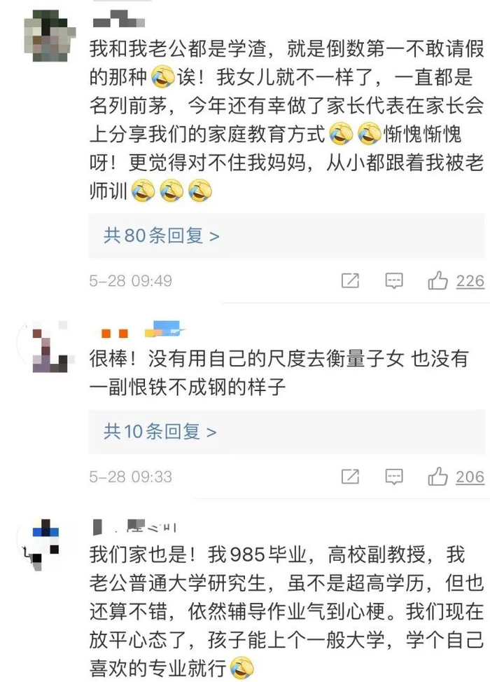 原标题:北大教授吐槽学渣女儿:跟倒数第二名有很大差距!网友评论亮了