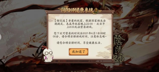 6月1日22时,新京报贝壳财经记者再次使用前述华为手机账号登录了原始传奇,结果发现可正常运行,但登录阴阳师、率土之滨等游戏时则弹出未成年人防沉迷提示,无法进行游戏。