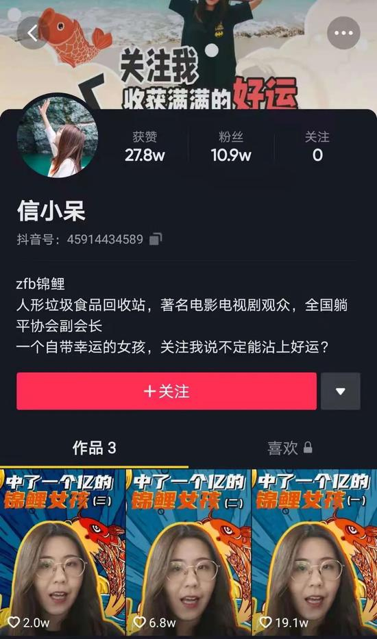 还记得三年前中奖一亿元的锦鲤信小呆吗?