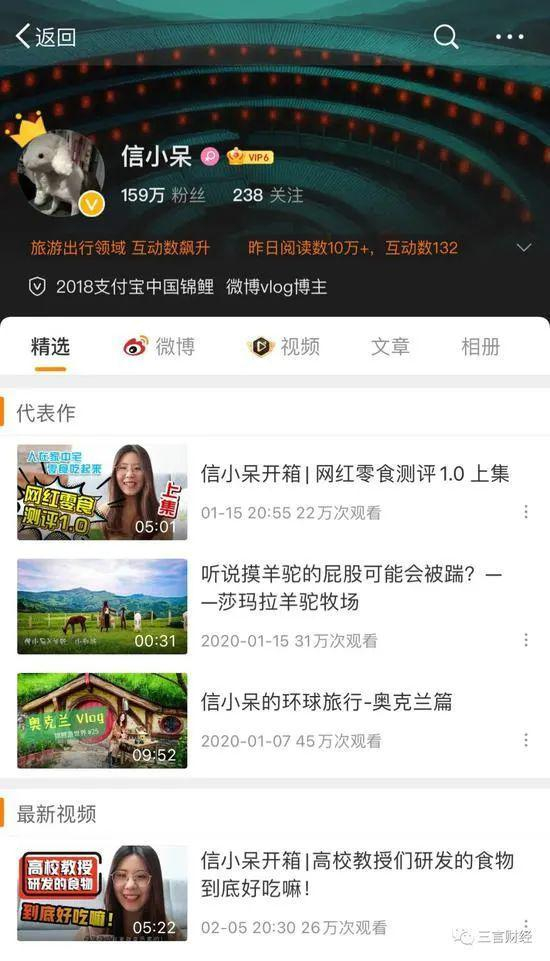 2018年国庆,信小呆中奖价值一亿元的礼品单后,便带上朋友一起到处旅游。她的微博也从几百几千个粉丝,瞬间爆增成100多万,截至目前已有159万粉丝,信小呆有什么风吹草动都能迅速蹿上热搜。