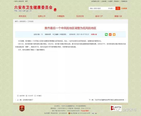 ○ 最新消息!六安市全域均为低风险地区!
