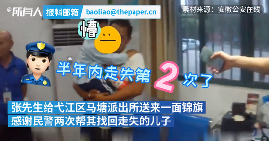 近日,芜湖的张先生给派出所送来一面锦旗,感谢民警两次帮其找回儿子。 原来,此前一名保安大叔领回走失小孩,送到了派出所,民警查看小孩信息后怒了,原来这个小孩前不久也走丢了,短短时日,家长又犯下了同样的错误,民警对其进行了批评教育。