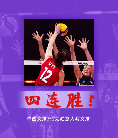 中国女排3:0战胜意大利女排,收获四连胜,三局比分为25-19、25-11、25-19!