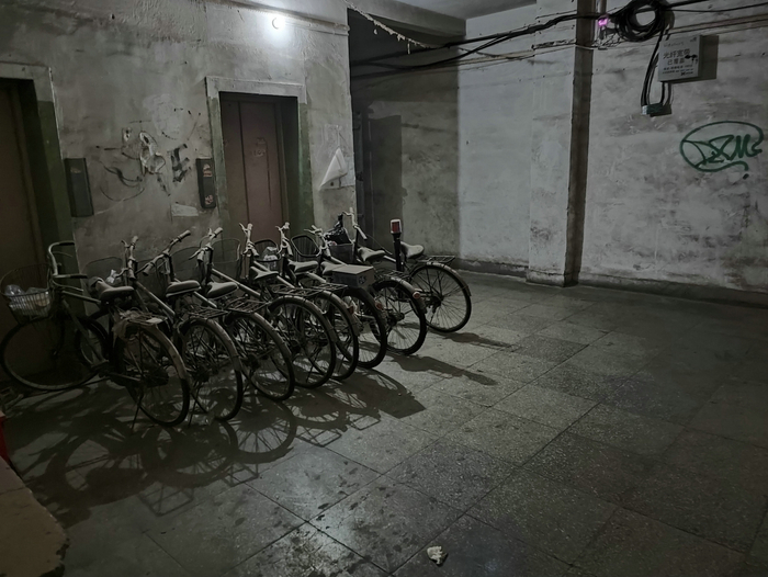 “这楼的墙体特别厚,有一米多吧。”坐在楼下的老姜,用手比划着,“墙体厚,透光不好,隔热就特别好,所以大夏天,进里头也是凉飕飕的。”他说,夜里尽是来练胆的年轻人,“这楼里本来就人少,他们一出来吓着住户,自己也吓一跳。”