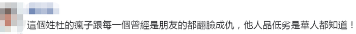 还有网友说,这个姓杜的疯子跟每一个曾经是朋友的都翻脸成仇,他人品低劣是华人都知道!↓