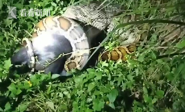 惊现3.7米长52斤重巨蟒,发现时正生吞整只山羊
