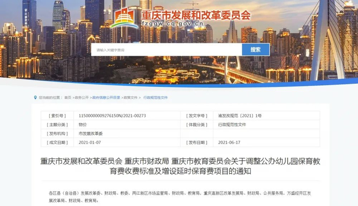 新闻早报 | 重庆市公办幼儿园收费标准有调整哦!