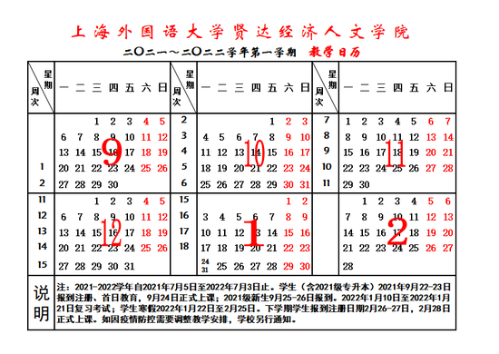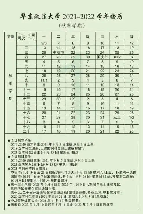 2021级新生9月19日(周日)、9月20日(周一)报到,9月22日(周三)正式上课。