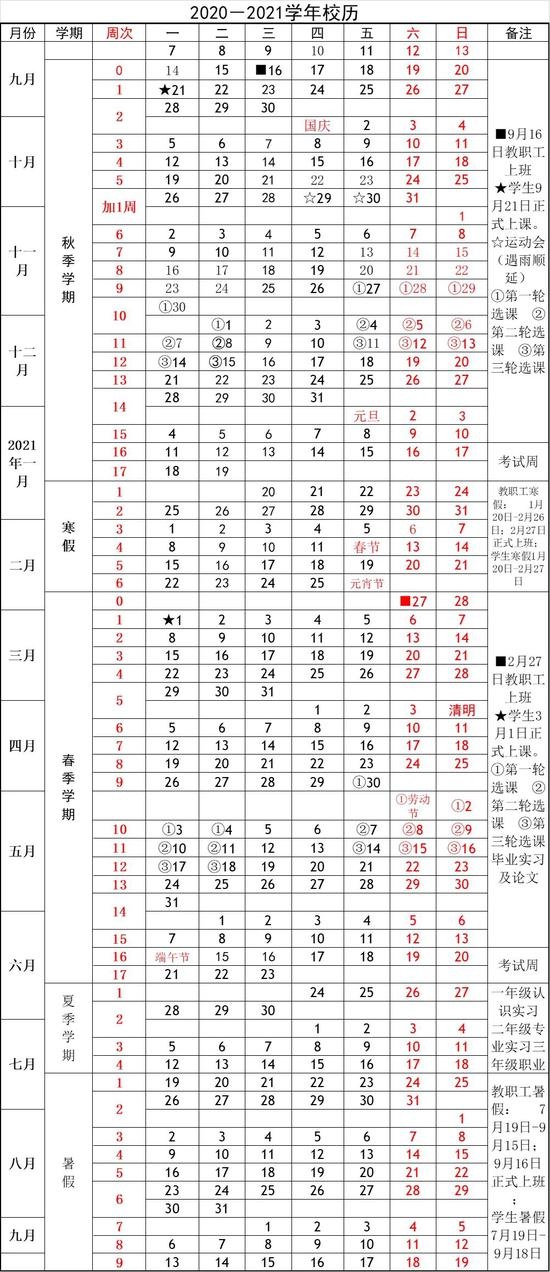 暑假时间:7月3日-9月11日 (其中专科二年级学生7月3日-9月10日、三年级学生7月3日-9月6日)