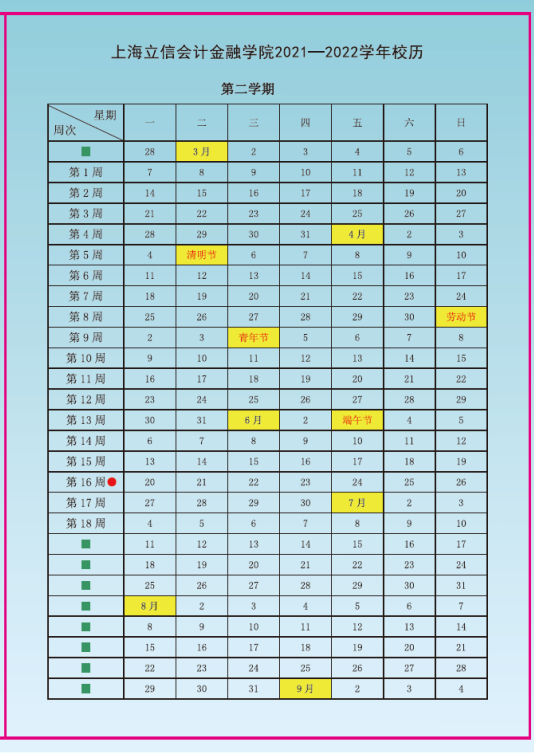 根据校历,本学期理论教学考试7月9日结束,7月12日至8月6日为实践教学时间,2021-2022学年第一学期于9月6日开学。