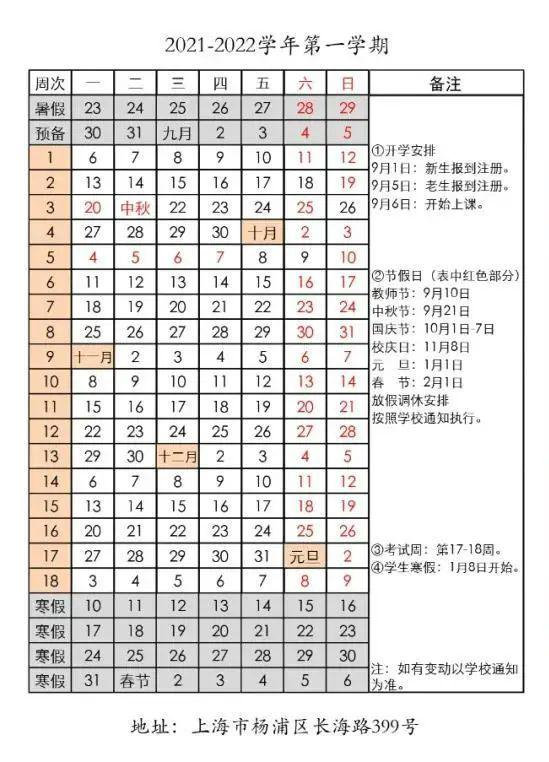 开学时间:9月4日(2019级、2020级),9月10日(2021级)