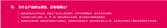蜜雪冰城强调了自己在供应链上的优势,成本价为加盟商供应原料,总部承担物流费,确保加盟商“薄利多销”后仍有利润空间。