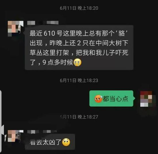 △蔷薇九里业主在微信群讨论发现貉的踪迹。
