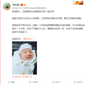 6月30日23时13分,林生斌在社交媒体发文:已组织新家庭,婴儿诞生,取名暖暖,希望得到大家的祝福。