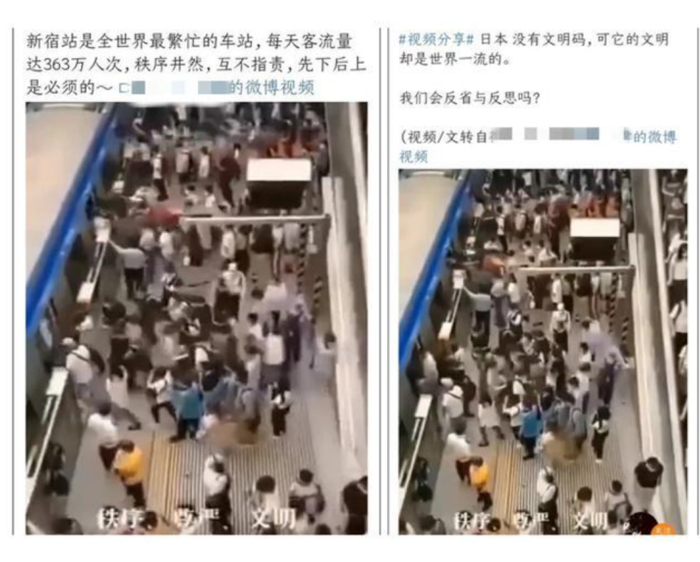 去年在社交平台上,有大V发布视频,赞美日本地铁站乘客井然有序,“新宿站是全世界最繁忙的车站,每天客流量达到363万人次,秩序井然,互不指责,先下后上是必须的。”有的配文则称,“日本没有文明码,可它的文明却是世界一流的。我们会反省与反思吗?”