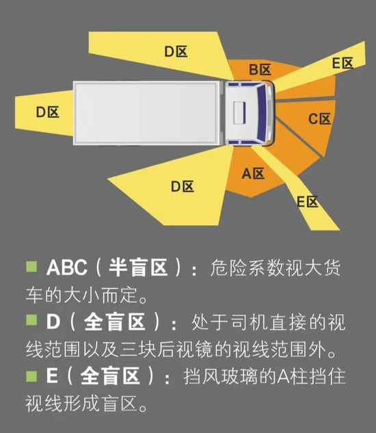 1、不长时间在大货车右侧行驶。因为所有车辆右侧盲区都比左侧盲区大,大货车更是如此。