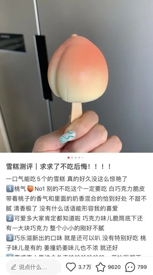 一个介绍“桃气”雪糕的小红书笔记获得了3.7万点赞和近1万的收藏