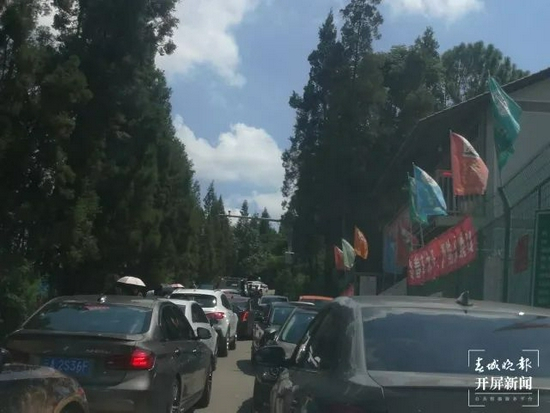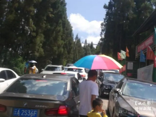 由于自驾车太多,造成严重的交通堵塞,山上的车下不来,山下的车进不去。交警不得不在进入长虫山地段的龙泉路与红云路交叉路口进行交通管制,并劝返准备进入长虫山的自驾车辆。