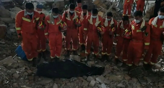 据中国消防消息,13日19时50分许,镇江消防在酒店倒塌废墟的西南角救出一名男性被困人员,但已无生命体征,全体消防指战员向遇难者脱帽默哀。这是搜救出的第23名被困者,目前搜救仍在继续。