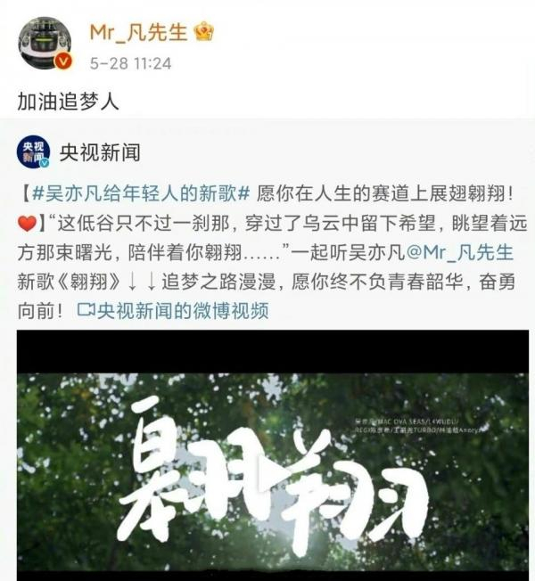 此外,央视新闻的官微今年5月曾为吴亦凡新歌做宣传,目前也已删除微博。