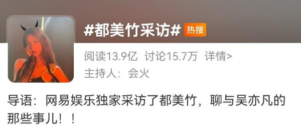 而#都美竹采访#一个话题也有高达13.9亿的阅读量。